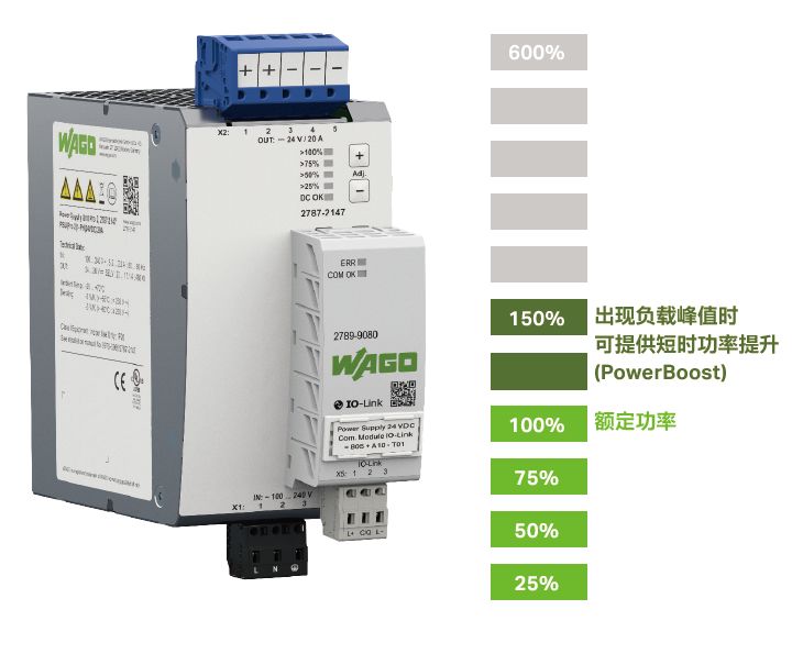 ▍效率高(96%) 新Pro 2電源寬負(fù)載范圍內(nèi)高達(dá)96%的效率,是節(jié)省能源成本、降低功率損耗并緩解控制柜冷卻壓力的關(guān)鍵所在。同時(shí),還可顯著減少碳排放。 ▍可通信(IO-LINK) 新Pro 2電源集成通信接口,可滿足多種應(yīng)用要求??ㄑb式IO-Link通信模塊可建立連續(xù)現(xiàn)場(chǎng)總線通信并為用戶提供實(shí)際輸出電流和電壓等數(shù)據(jù)。 ▍可配置(DI/DO) 新Pro 2電源另一大亮點(diǎn)是可配置,具備監(jiān)控功能,提供連續(xù)電源數(shù)據(jù)信息并發(fā)送故障信號(hào),從而實(shí)現(xiàn)無(wú)縫應(yīng)用監(jiān)控。 ▍新功能(ECB) 新型接口配置軟件具有本地/遠(yuǎn)程配置和參數(shù)設(shè)置功能。借此,Pro 2電源可輕松快速滿足不同系統(tǒng)需求。 通過(guò)配置功能將電源配置為電子斷路器模式。然后當(dāng)出現(xiàn)過(guò)電流時(shí)即可借助數(shù)字量輸入重新激活輸出——既節(jié)省了安裝外部保險(xiǎn)絲的空間和成本,又為下游設(shè)備提供了保護(hù)。 ▍負(fù)載管理 新Pro 2電源功率提升功能(PowerBoost)可提供長(zhǎng)達(dá)5s的150%輸出功率,允許電源輕松快速接通容性負(fù)載和高啟動(dòng)電流負(fù)載。同時(shí),長(zhǎng)達(dá)15ms的600%輸出電流還可為微型斷路器的快速可靠脫扣提供電力儲(chǔ)備。 ▍工程設(shè)計(jì) 得益于高效率帶來(lái)的小巧外形設(shè)計(jì)及低耗散特性,新Pro 2電源在控制柜中需要的空間更小,與其他組件保持的間距也更小,從而節(jié)省了冷卻裝置所用的成本。在某些情況下,甚至允許縮減控制柜尺寸,可進(jìn)一步節(jié)省成本。 此外,新電源具有CADENAS零部件平臺(tái)的2D / 3D數(shù)據(jù),EPLAN宏命令,支持SmartDesigner,提供E-CAE和E-CAD工具相關(guān)的常見(jiàn)數(shù)據(jù)格式,數(shù)字孿生讓E-CAD實(shí)施更輕松。 ▍極端環(huán)境 新Pro 2電源在?40°C至+70°C的溫度范圍內(nèi)均可啟動(dòng)和運(yùn)行,因而對(duì)控制柜的溫度調(diào)節(jié)要求降低節(jié)約了成本。工作海拔高達(dá)5000m(OVC II時(shí))。全新開(kāi)發(fā)的實(shí)用性模型保護(hù)的DIN導(dǎo)軌安裝方式,讓該產(chǎn)品在運(yùn)輸或操作過(guò)程中的惡劣條件下也能可靠安裝。 ▍綠色能源 新Pro 2電源效率高,能源成本更低,消耗減少,無(wú)需為控制柜安裝空調(diào)設(shè)備。另外,還可以減少CO2排放量,stand-by模式(通過(guò)DI或通信模塊激活)下排放量更少。所有Pro 2電源均符合RoHS標(biāo)準(zhǔn),采用優(yōu)質(zhì)原料,經(jīng)久耐用。 ▍安裝 萬(wàn)可彈簧夾持連接技術(shù)可提供具有高度安全保障且快速而免維護(hù)的連接,有助于顯著降低成本。同時(shí),憑借接插式連接器實(shí)現(xiàn)預(yù)接線和分線,節(jié)省了時(shí)間和空間。