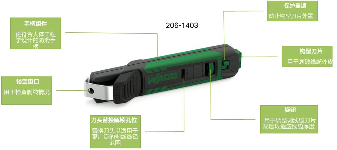 萬可剝除線纜護(hù)層用工具套裝206-1400,一套工具解決多種剝線問題,多種支架可更換,滿足您的各種剝線需求。